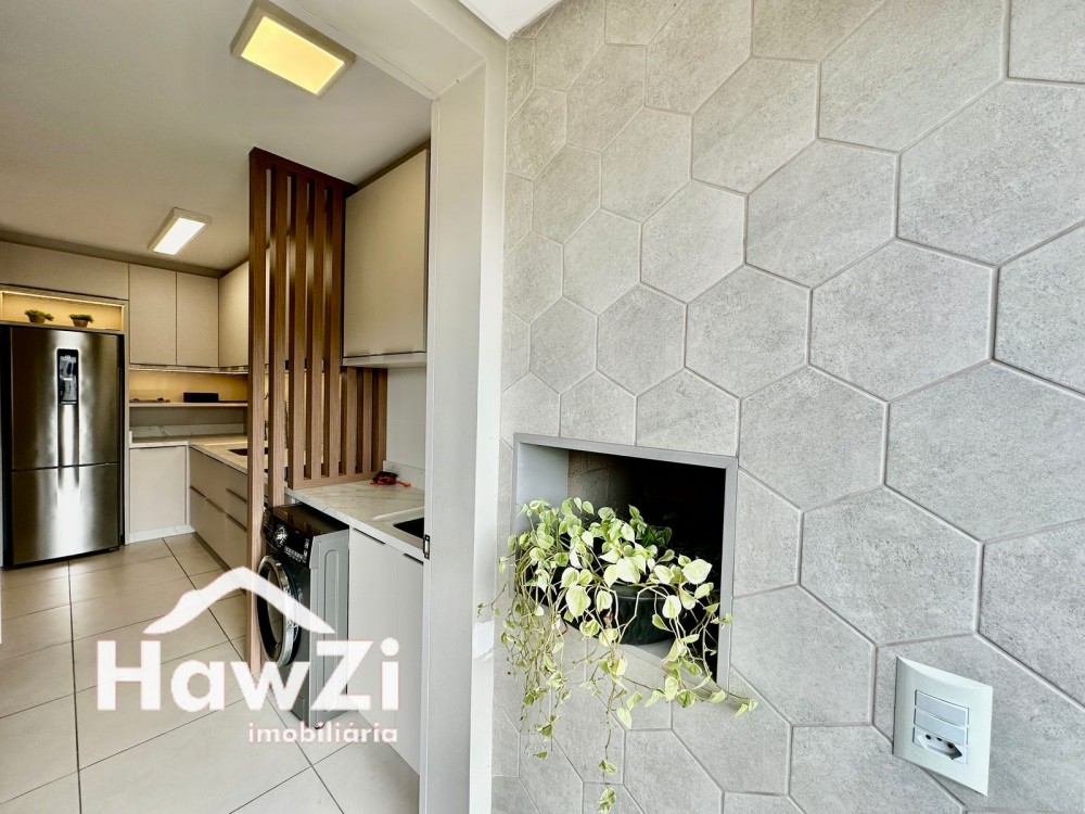 Sacada com churrasqueira a carvão e acesso para área de serviço